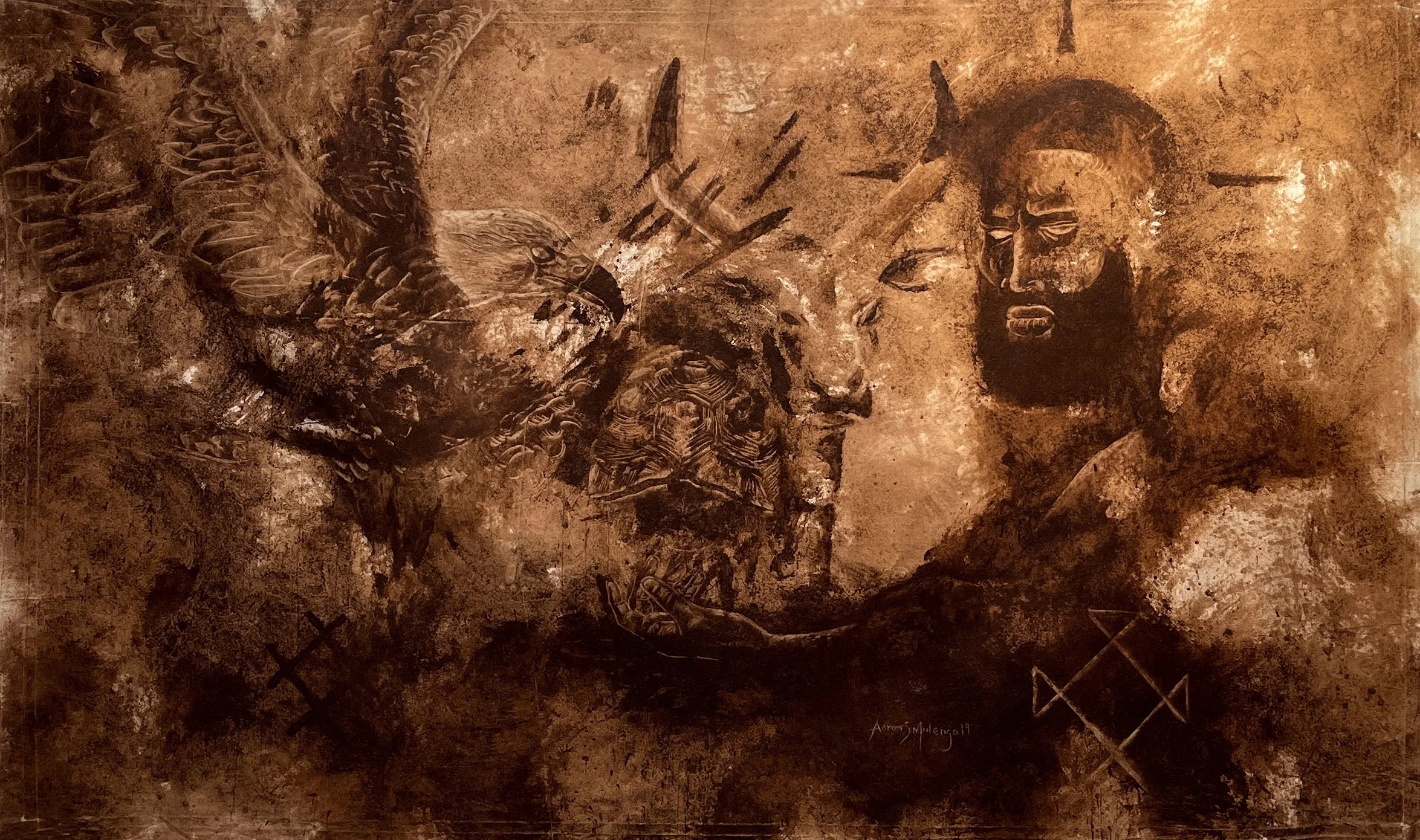 In my latest solo exhibition Allegory of Self, 2023, which was shown at Modzi Art in Lusaka, Zambia, I explored what it means to be connected to ones past and the impact that our faith, culture, upbringing and place of origin have on who we become.